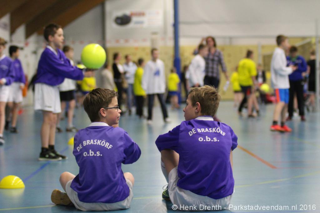 KENNISMAKING - Dinsdagmorgen was het onder leiding van de organiserende Gemeentelijke Commissie voor de Schoolsport een groot en gezellig mierennest in de Sorghvliethal. Voor de groepen 7 en 8 van de basisscholen en speciaal onderwijs in de gemeente Veendam kon weer volop kennis worden gemaakt met een van de verschillende teamsporten. Ongeveer 400 kinderen van de deelnemende scholen deden uitbundig mee aan het Mini Volleybal toernooi. De 74 teams waren verdeeld over 37 jongens en 37 meisjes.