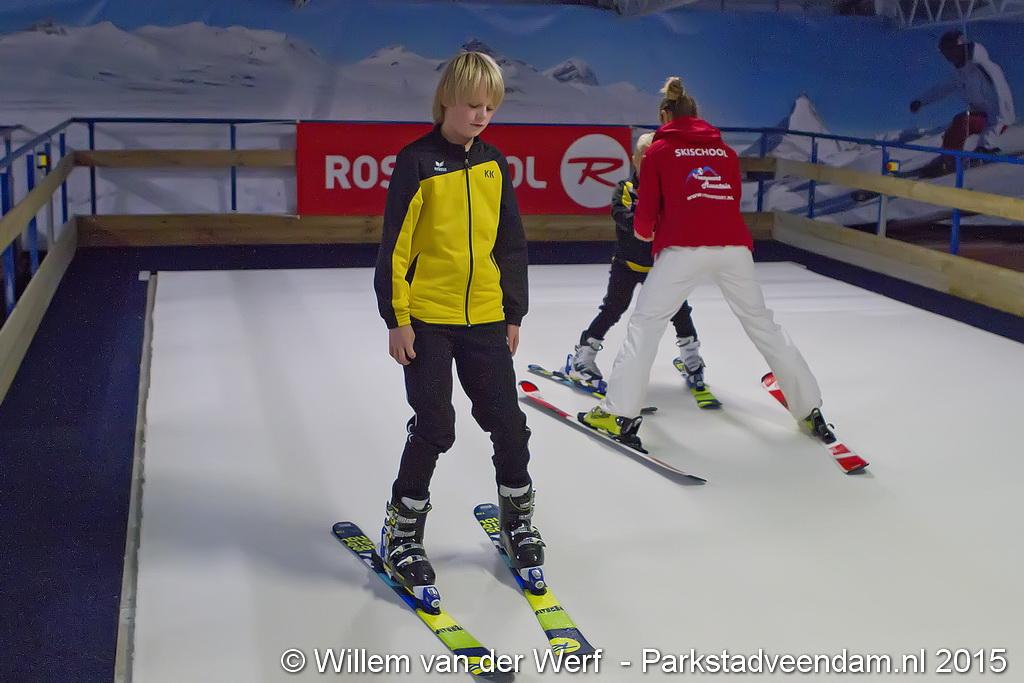 Trainer Jeroen Tump van skischool Veenpoort: “Ik doe dit werk meerdere dagen in de week. Alleen hier in Veendam. De skischool in het bowlingcentrum heeft dezelfde eigenaar. Eigenaar Harke van De Veenpoort is ook eigenaar van de skischool. Vier á vijf weken geleden ben ik hier voor het eerst geweest. Een vriend van mij was skileraar in Harkstede, waar we samen les gaven. En toen zijn we in contact gekomen met Harke en die heeft toen ons gevraagd of we les wilden geven”. En dat wilde het tweetal maar al te graag.