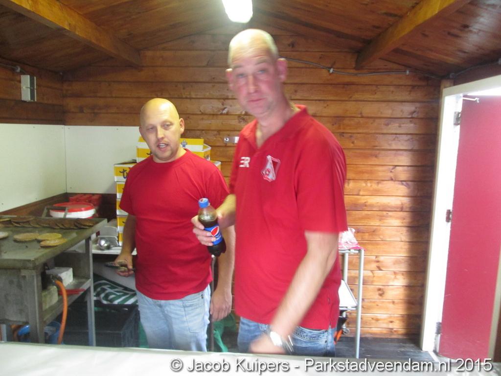 Inmiddels was het rondom de kantine een drukte van belang. Iedereen kon terecht voor een natje in een droogje. Een extra toilet stond opgesteld om het inwendige van de mens te lozen. Loten werden er verkocht om de la van de club te spekken. En wie anders dan Mr. Wildervank (Goos Boers) verkocht de loten. Vervolgens sprintte hij weg om elders ondersteuning te bieden.