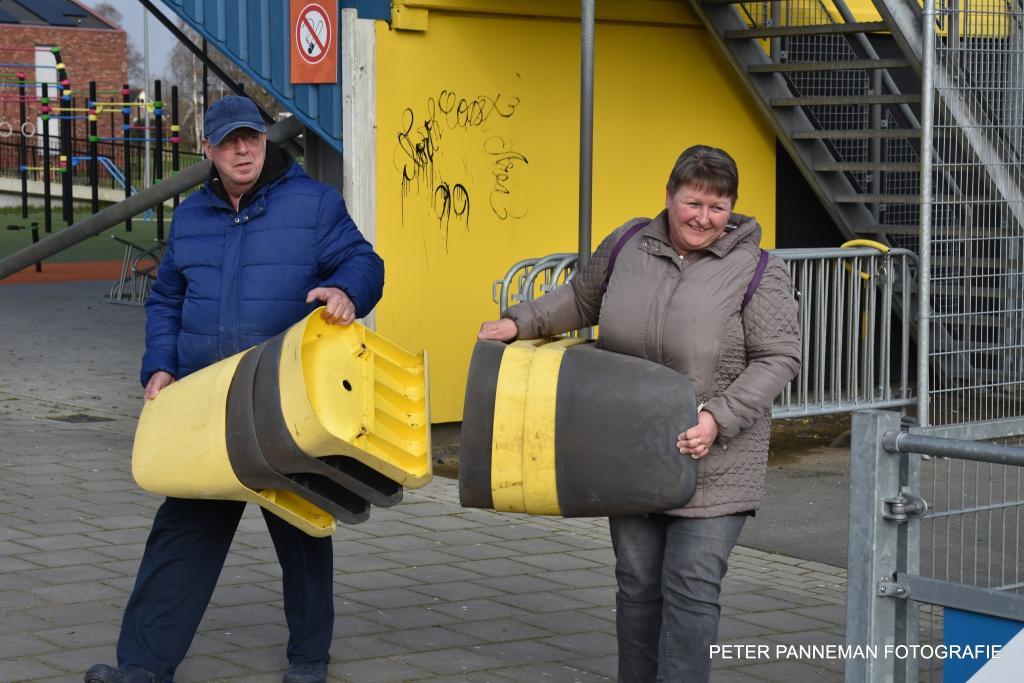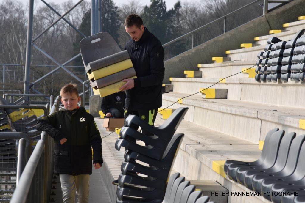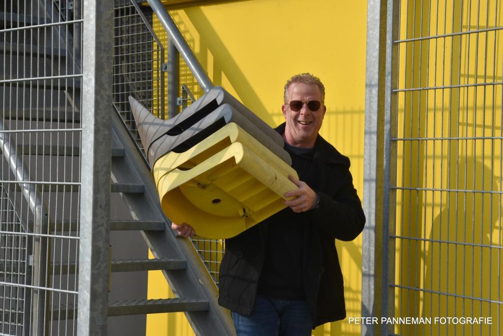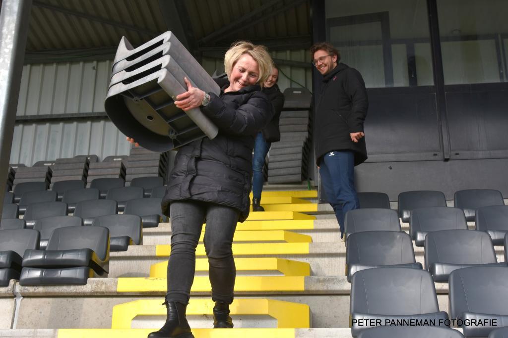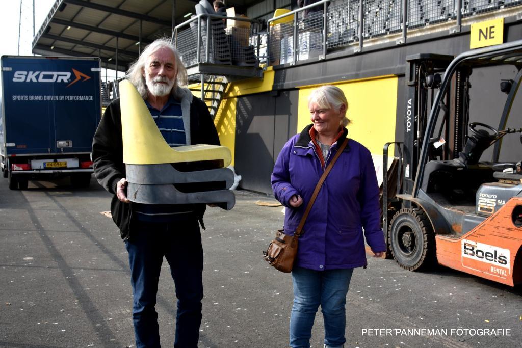 Woensdagmiddag werden in het Henk Nienhuis Stadion de oude tribunestoeltjes gratis weggegeven. Er ontstond een gezellig drukte en er was veel belangstelling voor de stoeltjes. De stoeltjes krijgen zo weer een nieuwe bestemming voor op de slaapkamer, onder de carport, of op de vlonder.