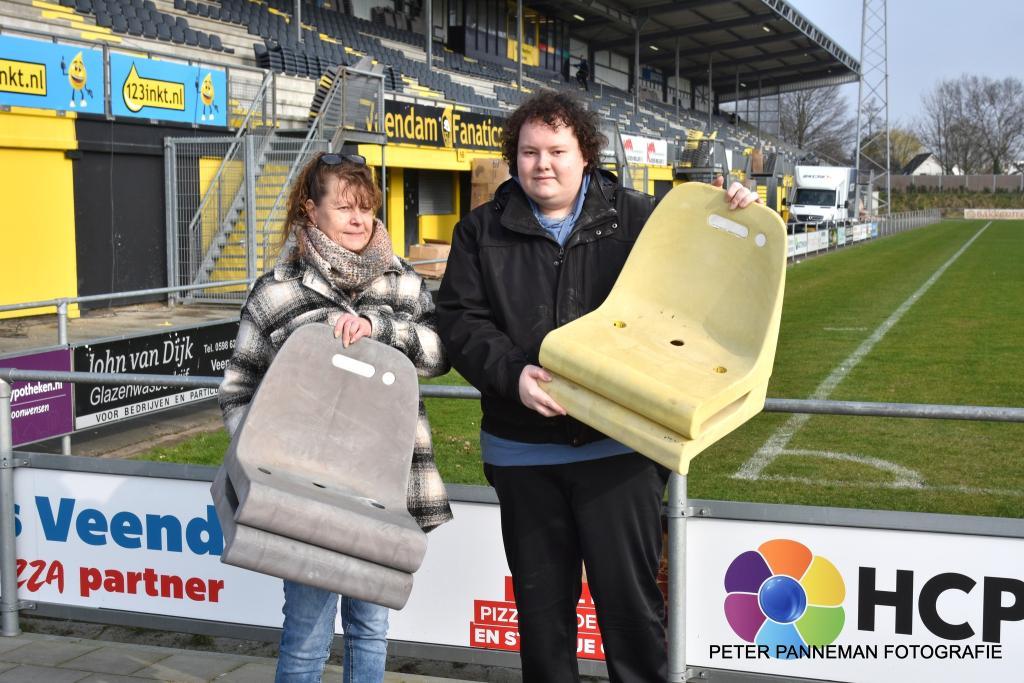 De oude stoelen zijn verhard en versleten, en daarom aan vervanging toe. Om inwoners van en rondom gemeente Veendam de kans te geven een stukje nostalgie in huis te halen, werden de oude tribunestoeltjes gratis weggegeven.