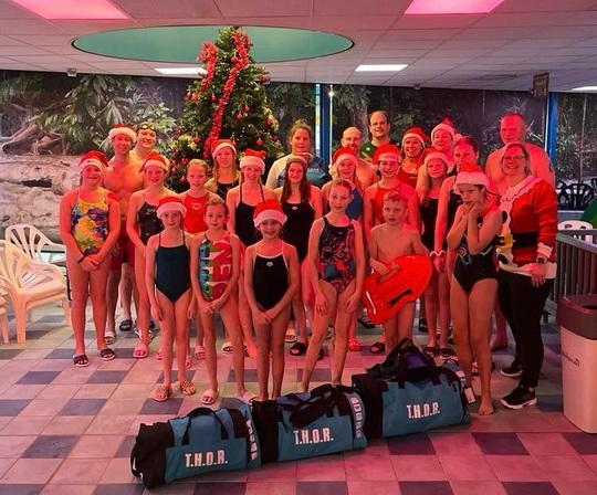 De laatste training van dit jaar sloten de leden van Z&PC T.H.O.R. in stijl af.  Na een goede warming-up waagden de groepen zich aan een gezellig potje ganzenborden. Sommige groepjes waren heel bedreven in het werpen van de dobbelstenen en haalden bijna de finish. Andere groepjes hadden wat meer moeite en gooiden meermaals een 1.  Al dat dobbelen en zwemmen maakt hongerig, dus na afloop was er voor iedereen een lekkere oliebol!