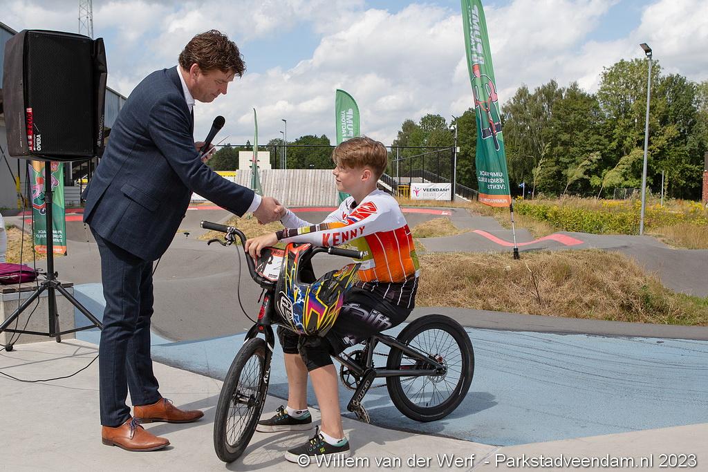 Voorafgaande aan de Nederlandse Pumptrack Series op het LSP-park aan de Langeleegte is de 12-jarige Aron Tilman uit Veendam zaterdagmiddag gehuldigd door wethouder Henk Jan Schmaal van de Gemeente Veendam. Aron ontving bloemen en een kadobon  voor zijn prestaties tijdens de Nederlandse Fietscross Federatie.