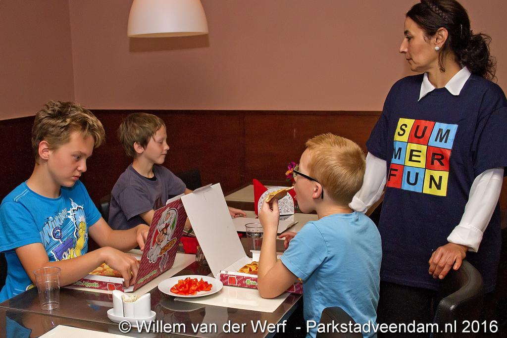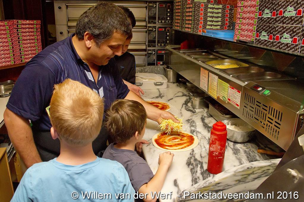 Dinsdag geen pizza Margerita op het menu maar wel pizza Jesse, pizza Leandra, pizza Frederique of een pizza Yarno. 16 kinderen mochten bij Cevdet in Oude Pekela hun eigen pizza samenstellen en bakken. En er lekker van smullen en wat ze niet meer lustten, mee naar huis nemen. Groot feest natuurlijk! En een activiteit van Summerfun waar uiteraard heel veel belangstelling voor was.