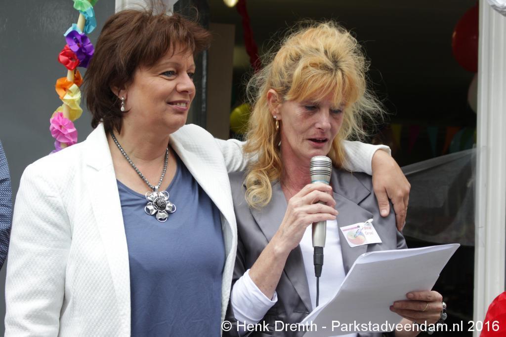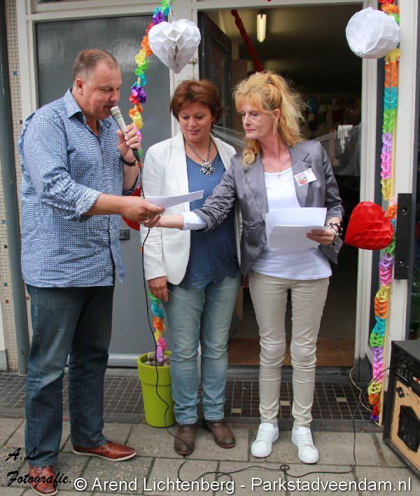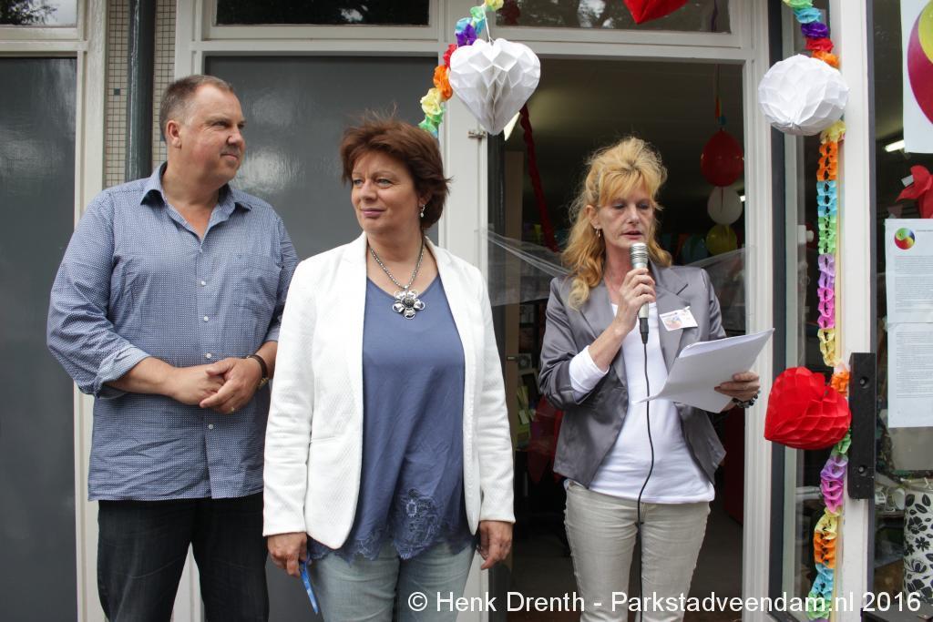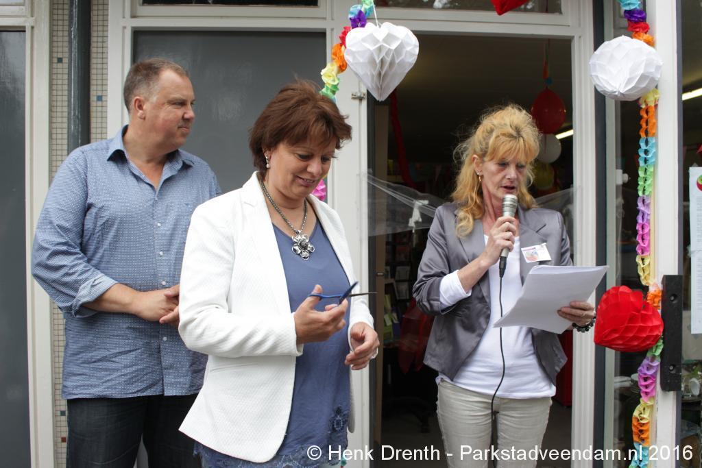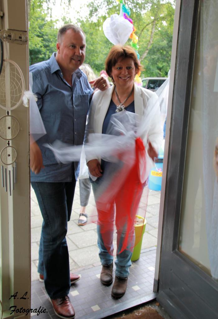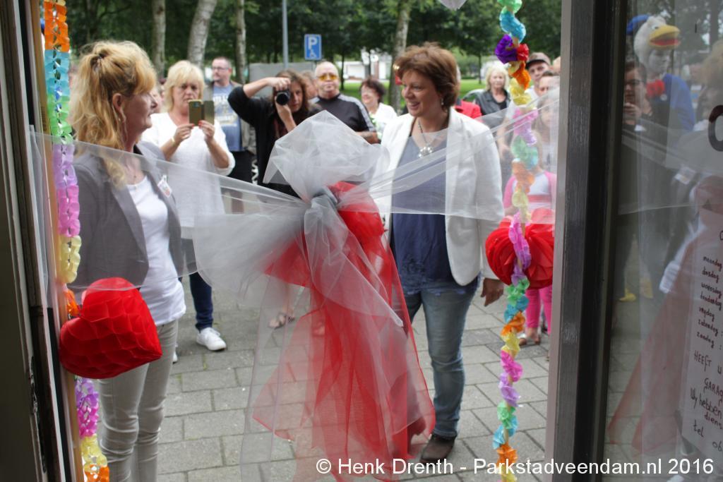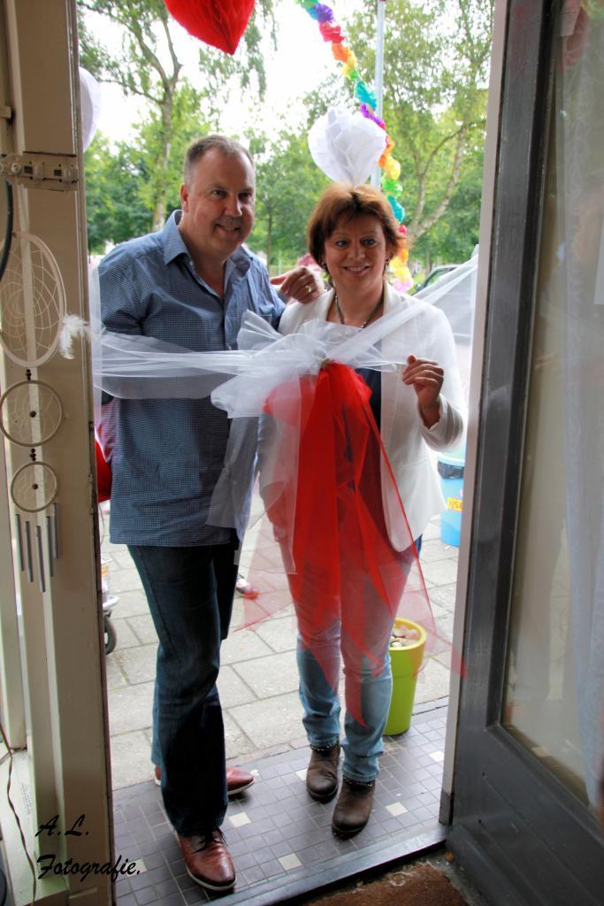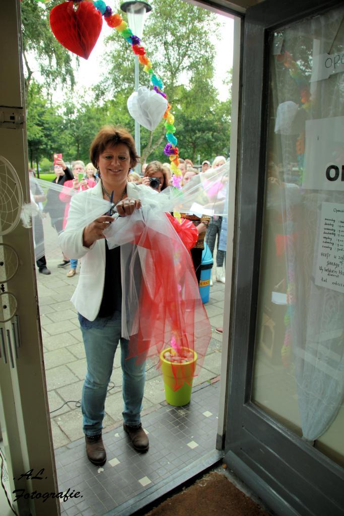 OPEN - Maandagmiddag was het eindelijk zover, om twee uur werd het felbegeerde pand van het Uitdeelpunt geopend. Door niemand minder dan Lucas en Gea. Voor Jannie Orsel was het een enorme ontlading van spanning over de afgelopen 4 jaar dat ze ermee bezig is geweest. Zij hield ook een toespraak, en normaal heeft ze haar woordje wel klaar. Maar gistermiddag was Jannie er even helemaal stil van, ze was zichtbaar aangedaan. Maar met een arm om de schouder van Gea Hulshof ging het uiteindelijk toch goed. Lucas hield ook een toespraak, hij vertelde het een emotioneel moment te vinden omdat er zoveel meer gebeurd dan in een gemiddelde kringloopwinkel. Gea knipte het lint door.