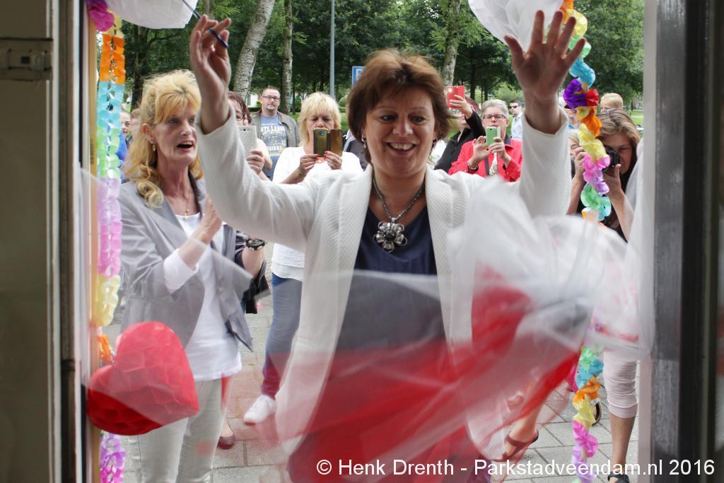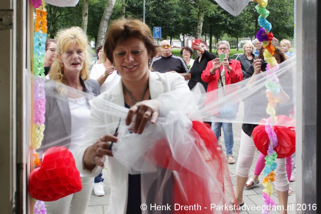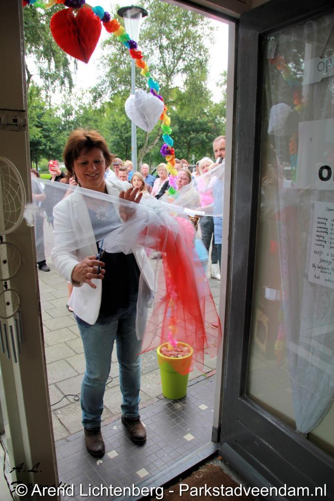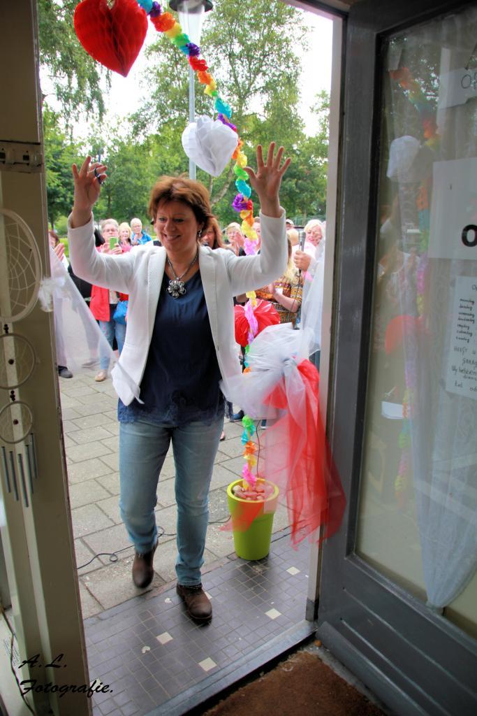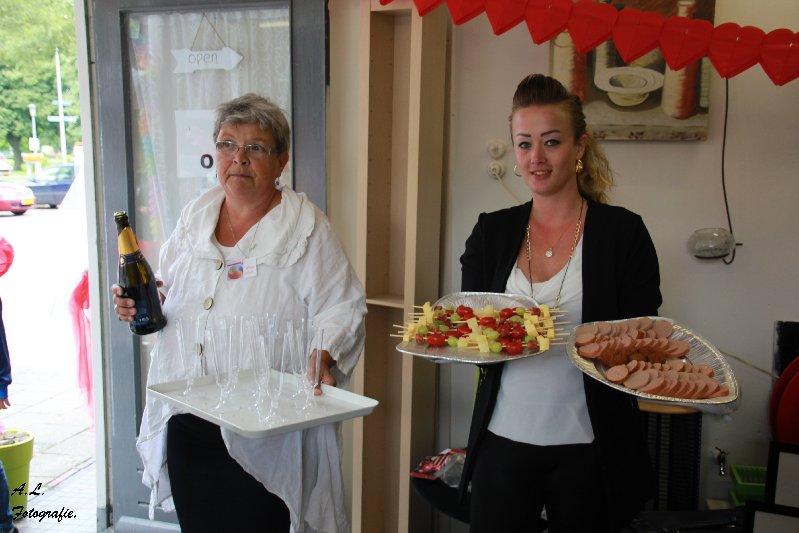 De winkel was al vanaf 4 juli open, en dat was vanzelf al door de mensen opgemerkt. Buurtbewoonster Aaltje was de allereerste bezoekster. En ook tijdens de opening was ze er. Eigenlijk was ze een soort eregast. Elke dag komt ze een kopje thee drinken, en verhalen vertellen over vroeger. Vandaag is ze 76 jaar geworden, en dat gaat niet onopgemerkt voorbij.