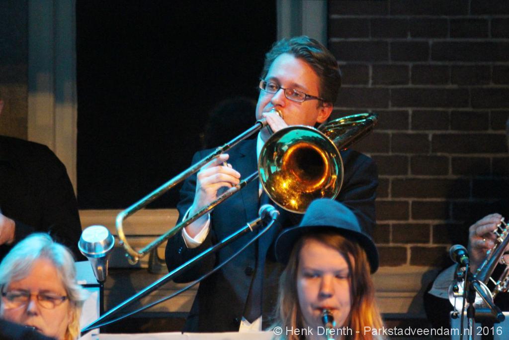 NIEUWJAARSFUIF - Op Nieuwjaarsdag werd in vanBeresteyn het nieuwe jaar in gedanst. Met de Basin Street Bigband en DJ Long Berry herleefden oude tijden volop. De avond was georganiseerd in samenwerking met Team sport/cultuur Veendam met het Ouderenwerk van Compaen. Dit had geresulteerd dat verschillende tijdsperiodes op de dansvloer herleefden.