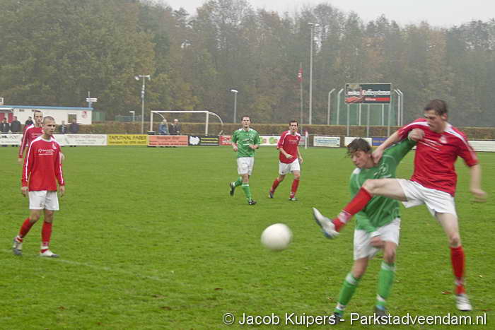 Wildervank heerste dus. Een voorzet van Maarten Wubbeling kopte Mark van der Laan open voor de goal net naast. En in de laatste 20 minuten moesten beide ploegen dus met 10 man verder. Vanaf dat moment ging Wildervank álles of niks´ spelen. En het werd alles. Maarten Wubbeling ging op de solotoer en het was dus voor de Kor Oldenburger een gemakkelijke intikker. Eindstand dus 2-1 voor Wildervank.
