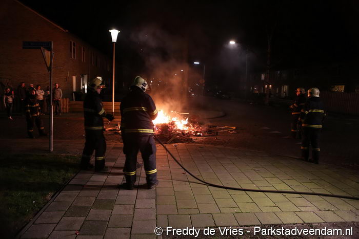 Dinsdag 23:29 uur – De brandweer is zojuist opgeroepen voor een vreugdevuur aan de Odewaldlaan / Cohenstraat