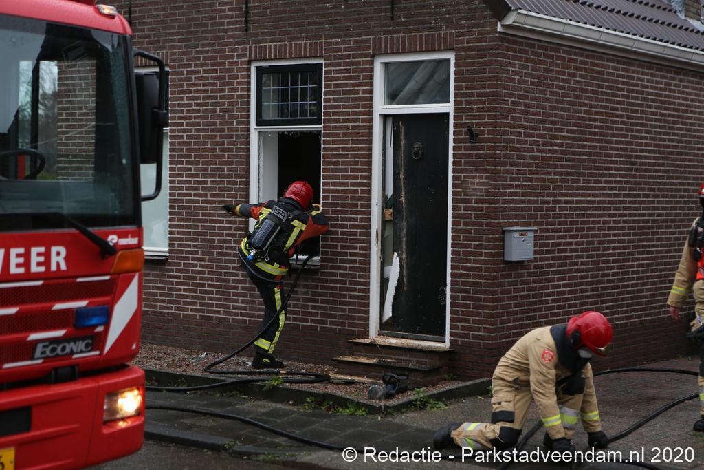 Brandweer had even moeite om de woning te betreden maar besloot al snel door een ingeslagen raam naar binnen te gaan. De brand was snel onder controle en kon snel worden afgeblust.