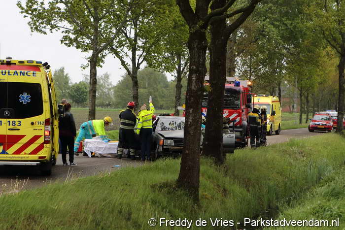 De brandweer heeft de middenstijl uit de auto geknipt en de patient samen met het ambulancepersoneel bevrijd. De bestuurder is met spoed in een ambulance naar het ziekenhuis vervoerd.
