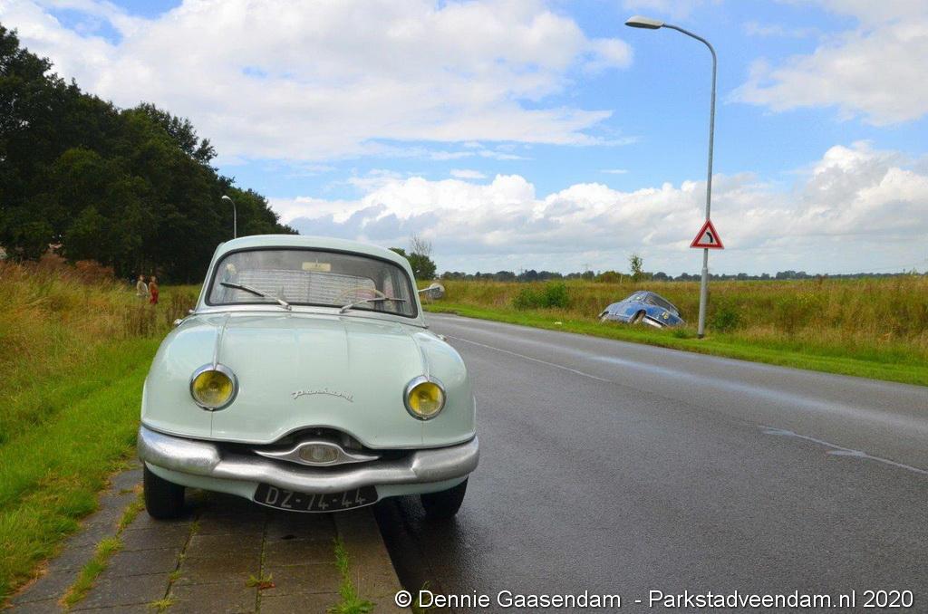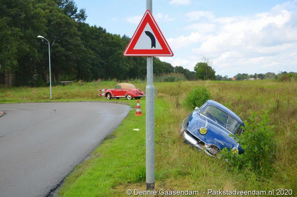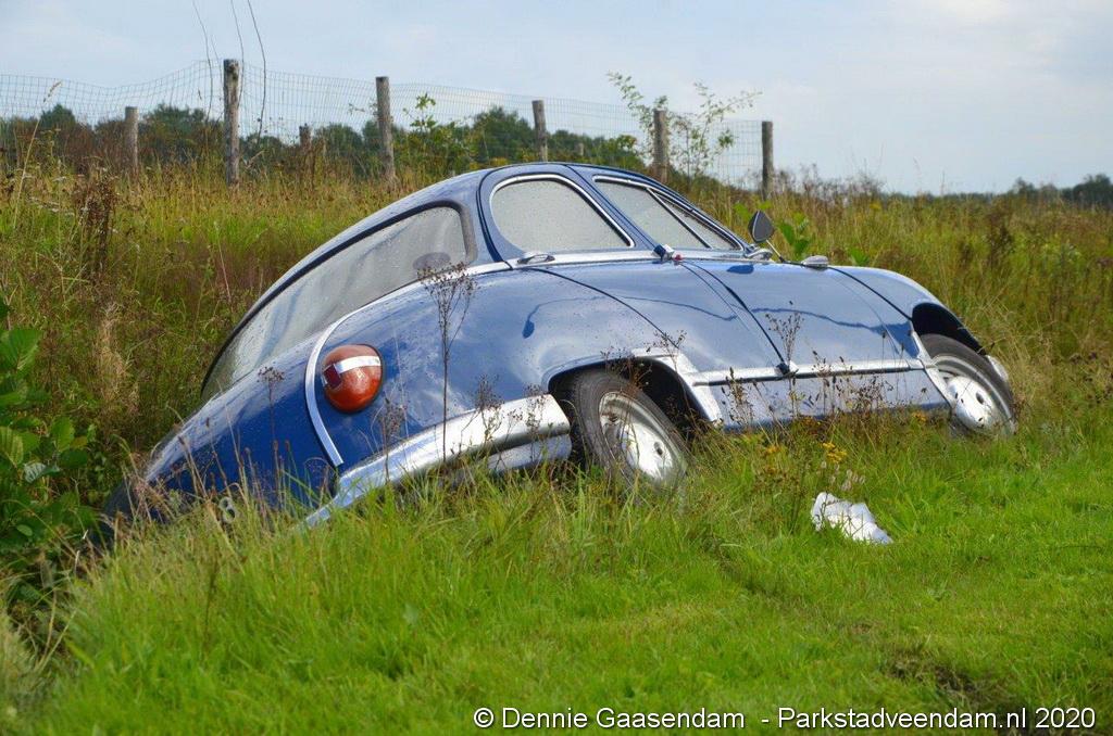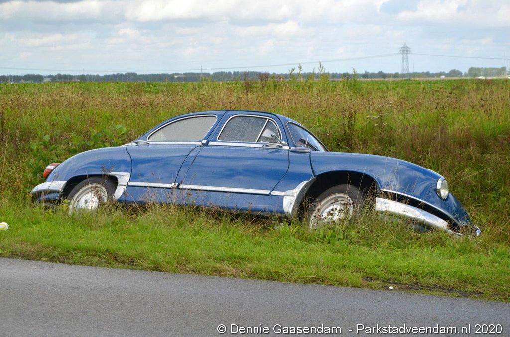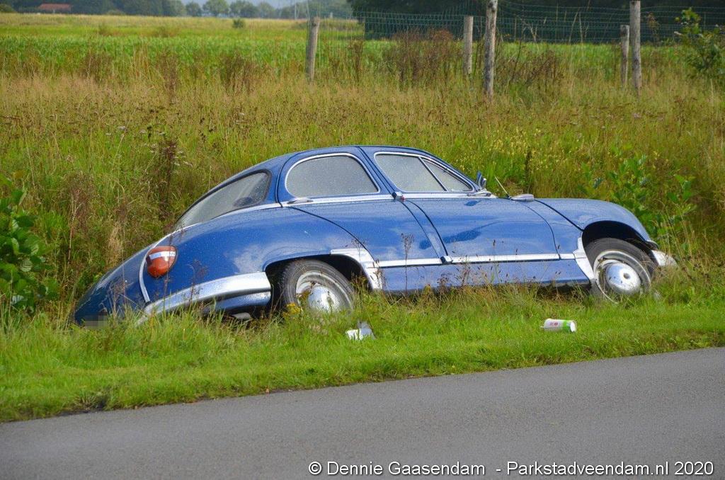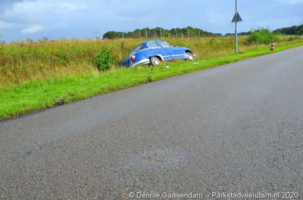Zaterdagmiddag is de bestuurder van een oldtimer, een Panhard uit 1956, met zijn bolide de sloot in gegleden op de Oosterweg in Muntendam. Ter plaatse waren beide rijstroken spiegelglad door olieresten op het wegdek. De bestuurder kon na de glijpartij ongedeerd zijn wagen verlaten.