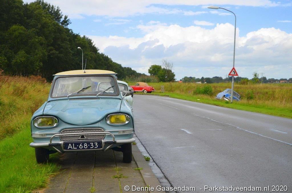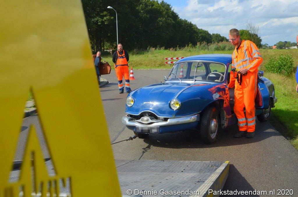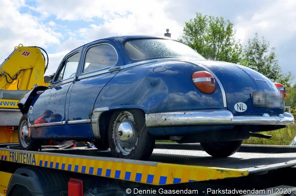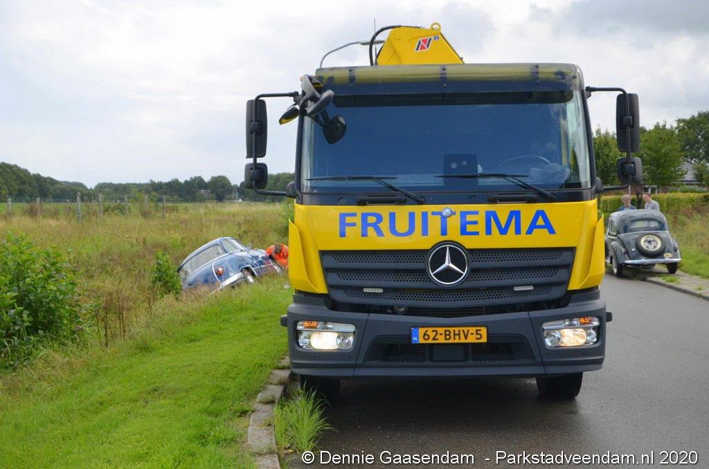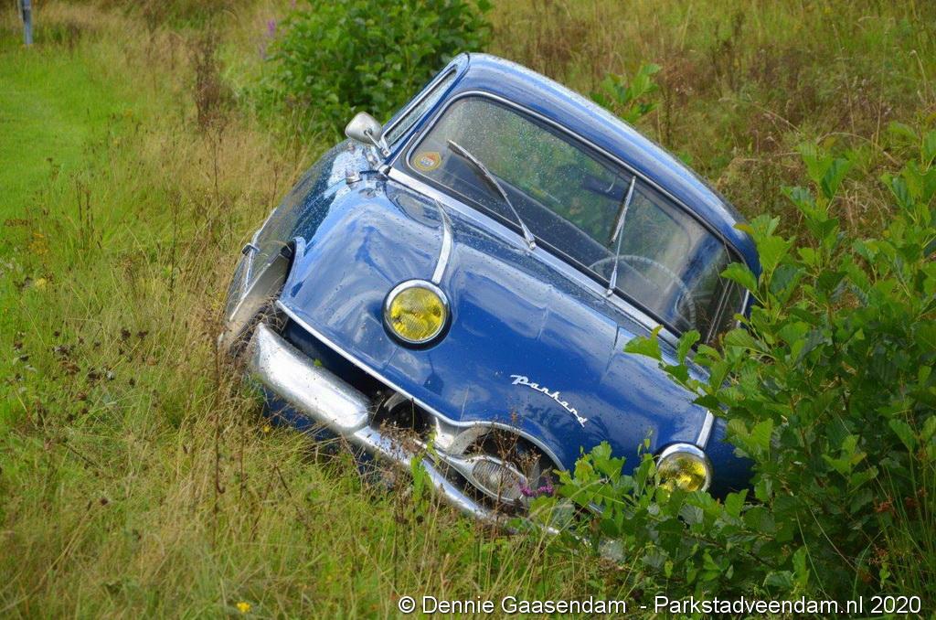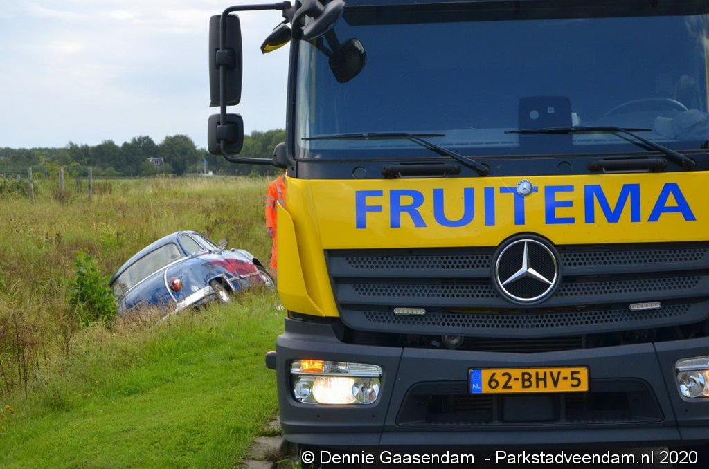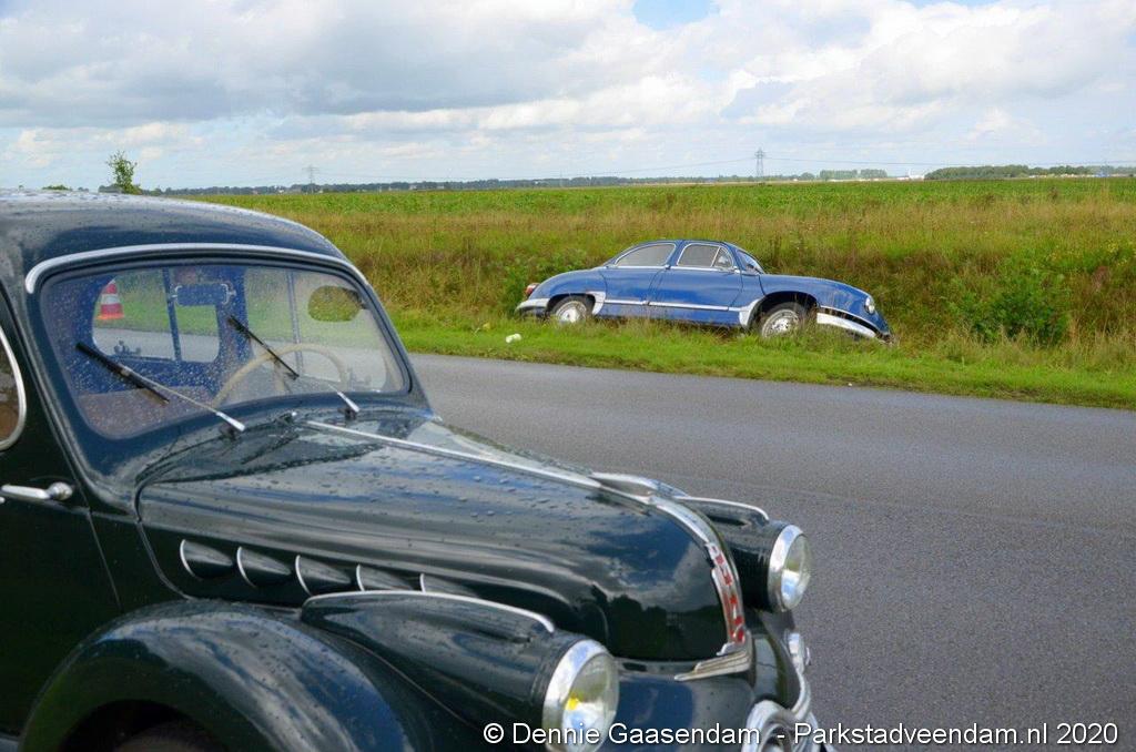 Zaterdagmiddag is de bestuurder van een oldtimer, een Panhard uit 1956, met zijn bolide de sloot in gegleden op de Oosterweg in Muntendam. Ter plaatse waren beide rijstroken spiegelglad door olieresten op het wegdek. De bestuurder kon na de glijpartij ongedeerd zijn wagen verlaten.