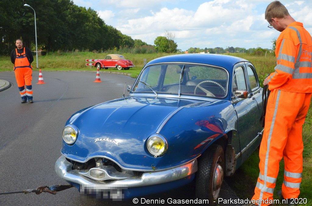 De man reed in een groep met meerdere oldtimers. Een berger heeft de wagen afgesleept. De Gemeente heeft nadat de wagen is afgesleept de weg gereinigd.