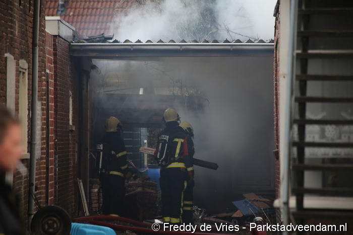 Bij aankomst bleek een schuur achter de woning in de brand te staan.