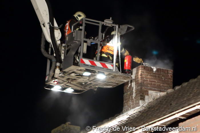 De hoogwerker van brandweer Veendam werd in stelling gebracht en vervolgens werd de schoorsteen geveegd. Rond 20.00 uur was de klus geklaard. Tijdens de brand was de doorgaande weg korte tijd afgesloten.