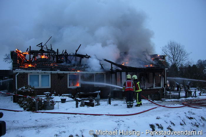 Hierop rukte de brandweer van Veendam uit. Ondanks de inzet van de beide korpsen, was de woning niet meer te behouden en brandde volledig af. De oorzaak van de brand is nog onbekend.