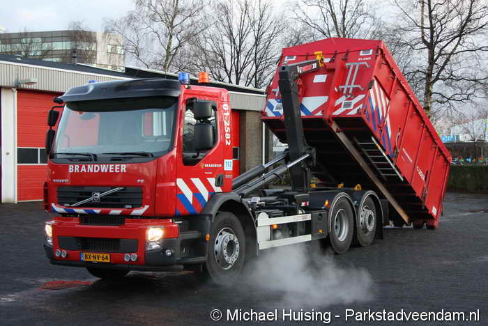 Een containerauto van de gemeente reed samen met de brandweer de brandjes af zodat het gebluste afval meteen kon worden afgevoerd.