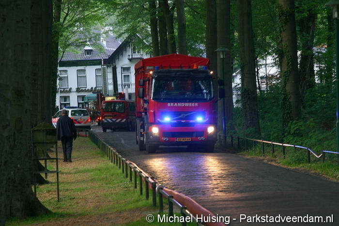 Het grootwatertransport werd vanaf het Ruiten A kanaal (Hoofdstraat) direct de Boslaan in geleid en uitgereden tot voor het hotel. Naast het korps Veendam waren in eerste instantie de tankautospuit van Ter Apel en de hoogwerker van Stadskanaal gealarmeerd.