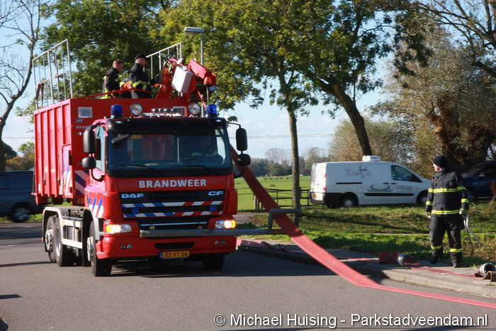 De brandweer kwam met veel materieel ter plaatse. (2x tankautospuit en een hoogwerker)