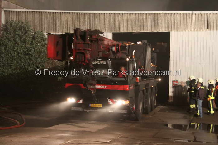 Nadat de rook uit de loods was verdreven werd de kraan naar buiten gereden. De machinist van het voertuig controleerde gelijk alle functies van het voertuig. Het leek erop dat de kraan geen grote gebreken vertoonde. Wel zag het voertuig zwart van de roet.