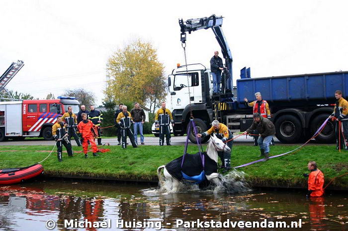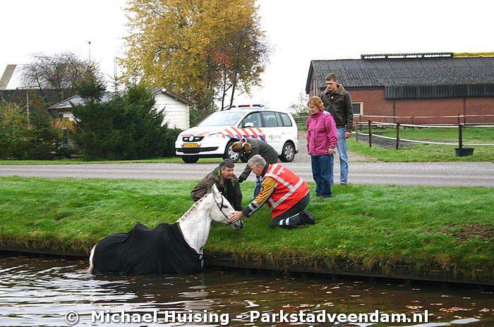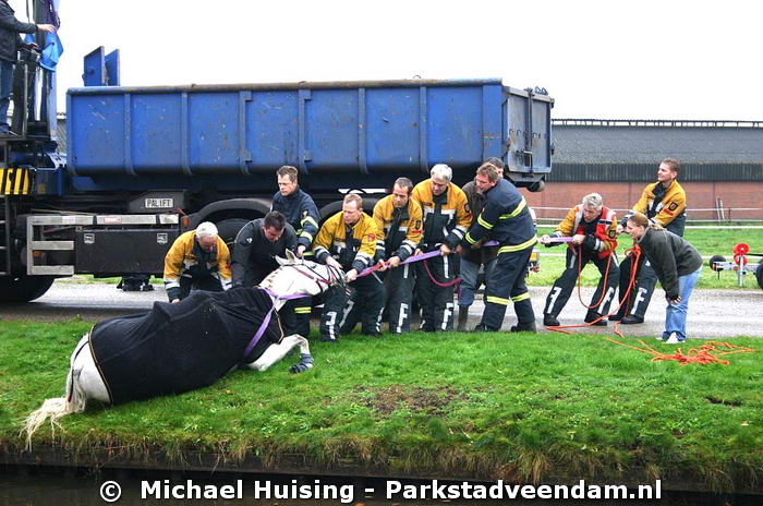 Met vereende krachten lukte het om het paard op het droge te houden.