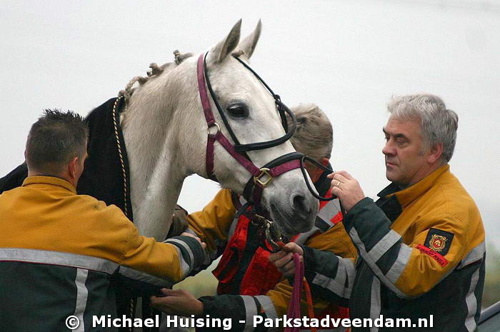 Hierdoor moesten alle zijlen worden bijgezet om te voorkomen dat het paard opnieuw in het water zal belanden.