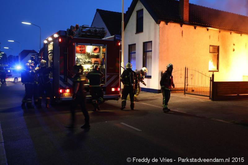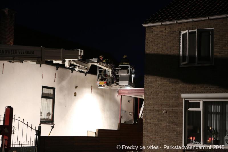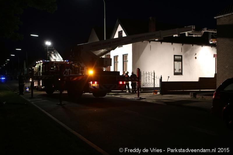 In Veendam zijn we brand meester. Rook is grotendeels achter woningen langs getrokken, we gaan verder kijken of er sprake is van asbest.
