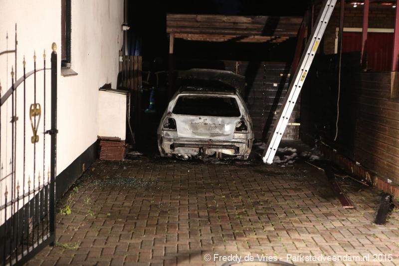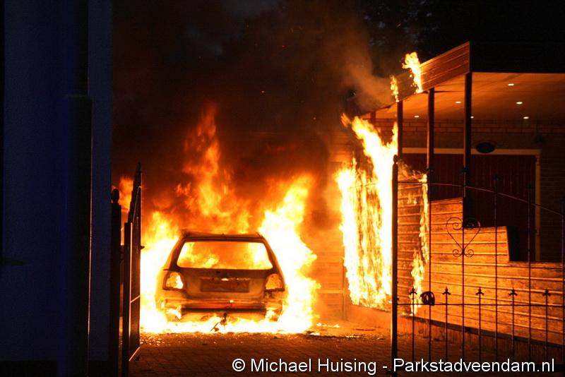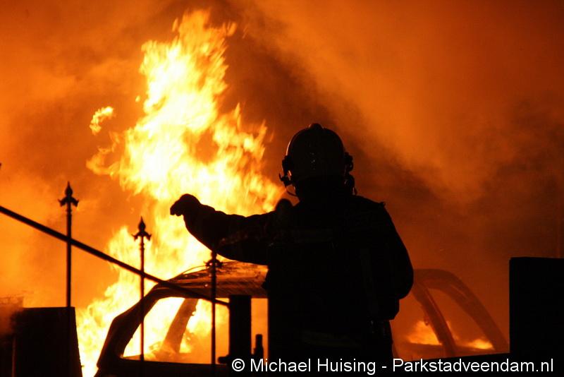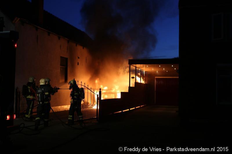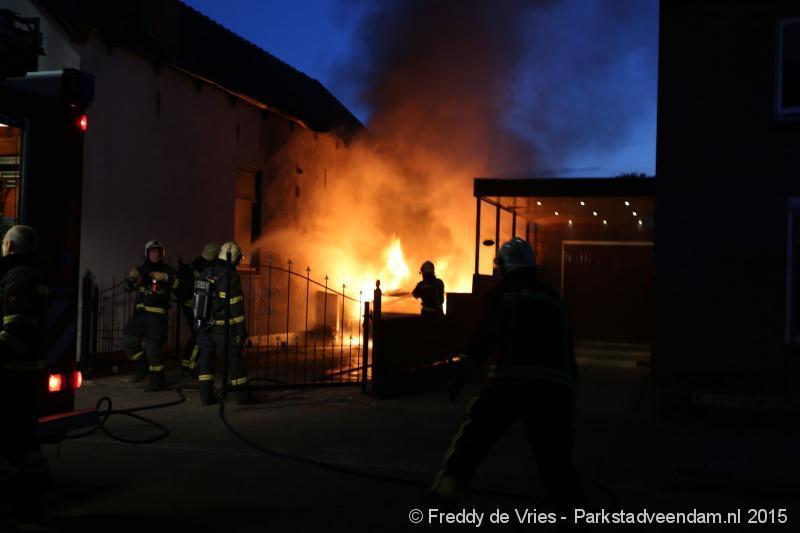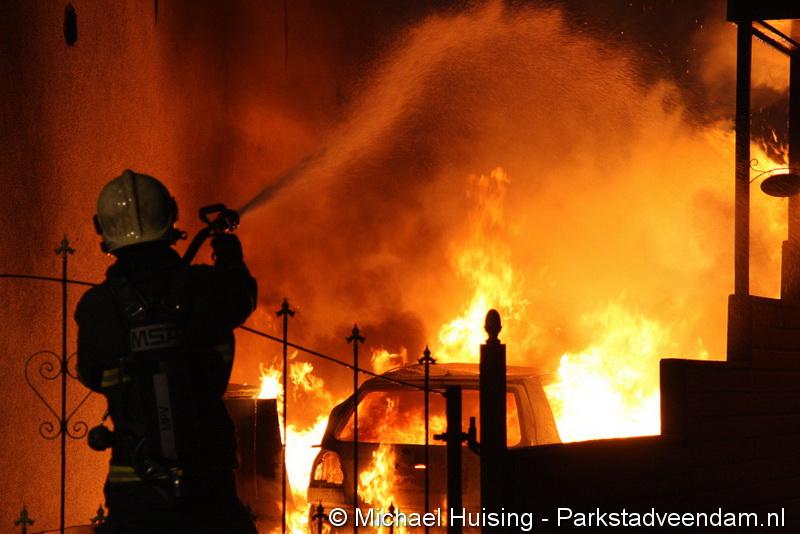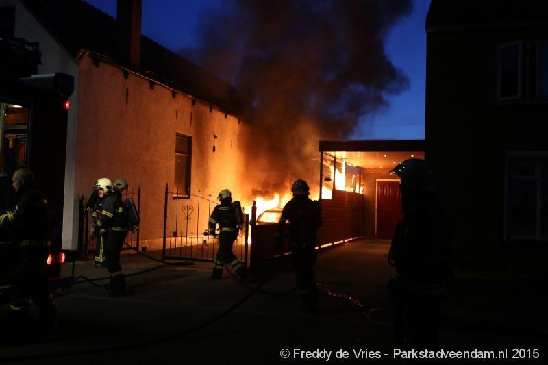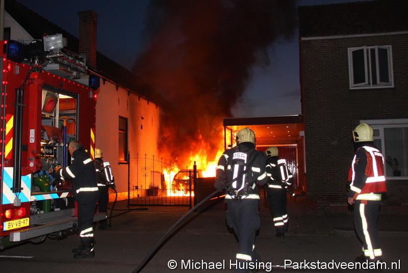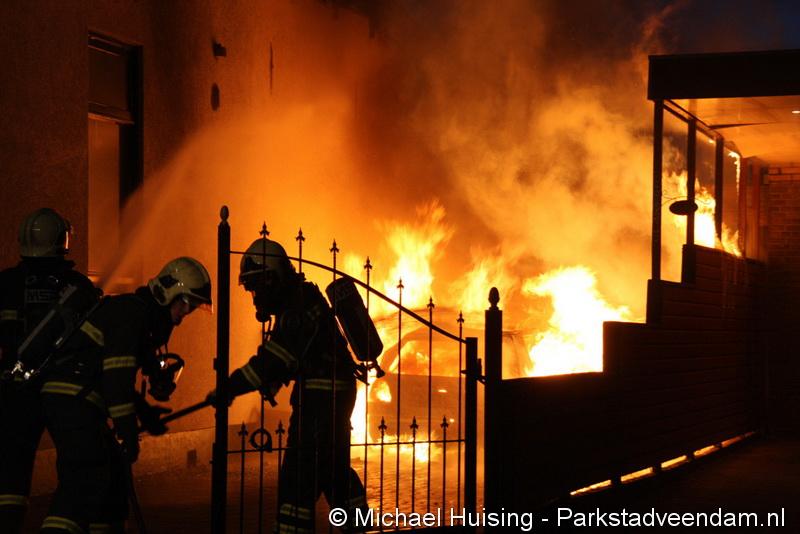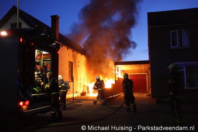 Brand Veendam onder controle. Was een korte uitslaande brand in garageboxen.