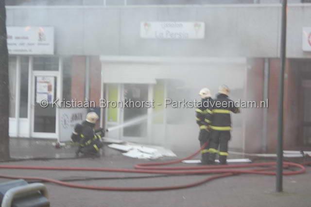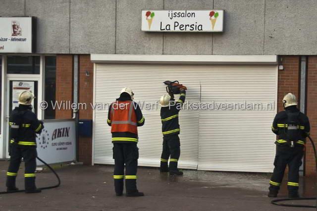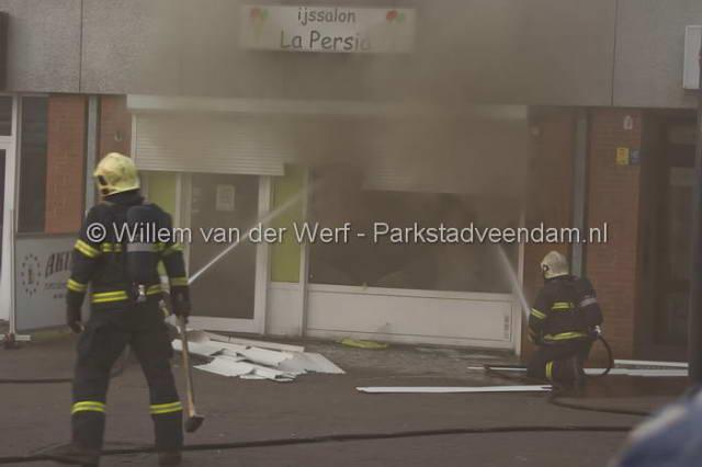 CENTRUM - In de vorig jaar geopende ijssalon ‘La Persia' is dinsdagavond omstreeks 20.20 uur brand ontdekt. Omdat de salon eerder doelwit is geweest van een poging tot brandstichting, had de eigenaar zijn zaak beveiligd met een rolluik. Met een motorzaag moest de brandweer zich toegang verschaffen tot de winkel. Hierna bleek de brand achter in de winkel te woeden.