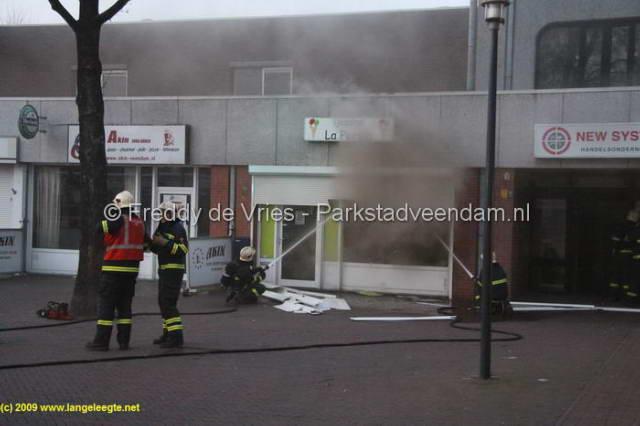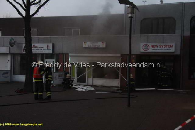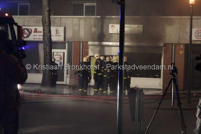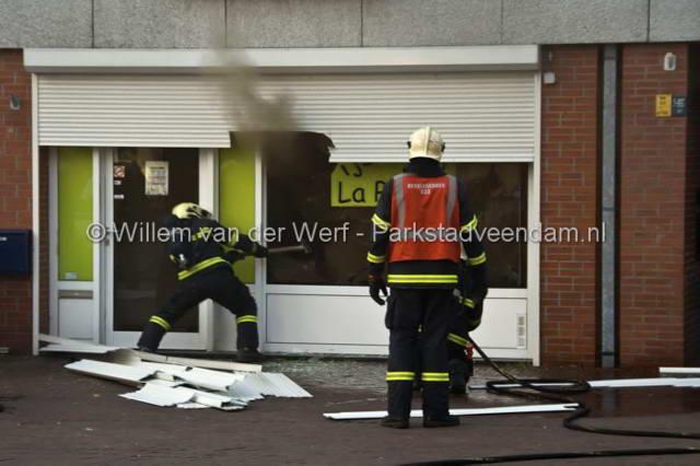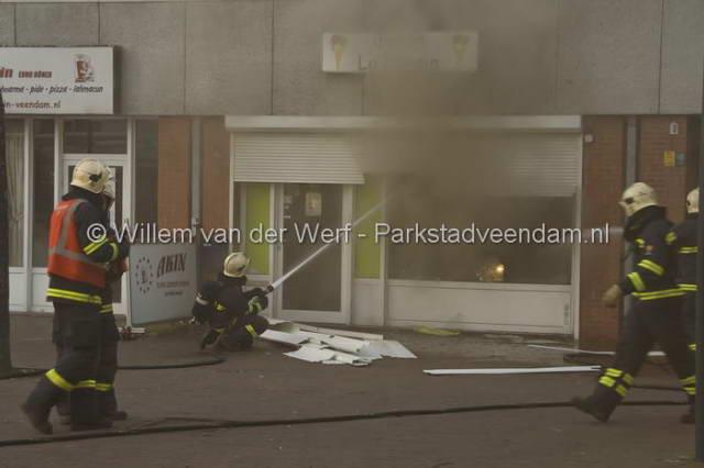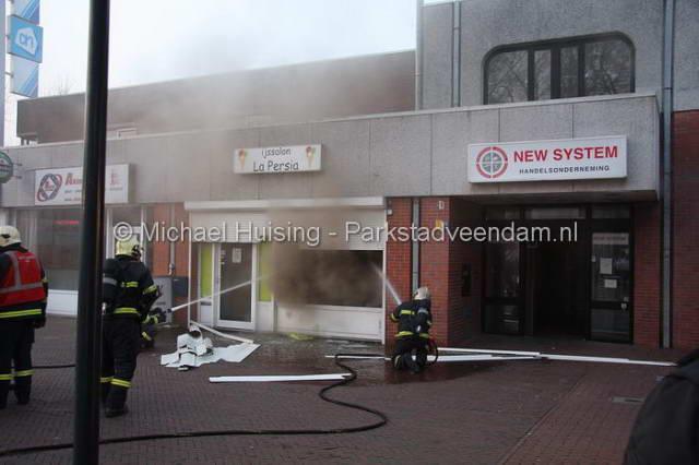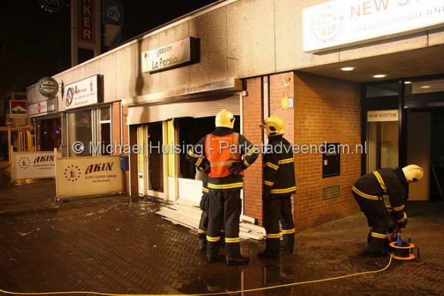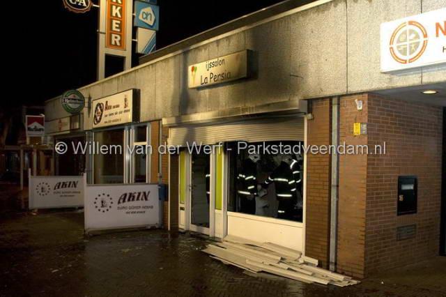 CENTRUM - Dinsdagavond om half 9 moest de brandweer uitrukken voor een brandmelding in het centrum van Veendam. Het betreft de vorig jaar geopende ijssalon "La Persia". Twee april is er nog een poging tot brandstichting gedaan door een brandbom door de ramen te gooien. Deze aanslag is mislukt waarna de eigenaar de zaak had beveiligd middels rolluiken voor de ramen. Hoe de brand vanavond heeft kunnen ontstaan is dan ook een raadsel.