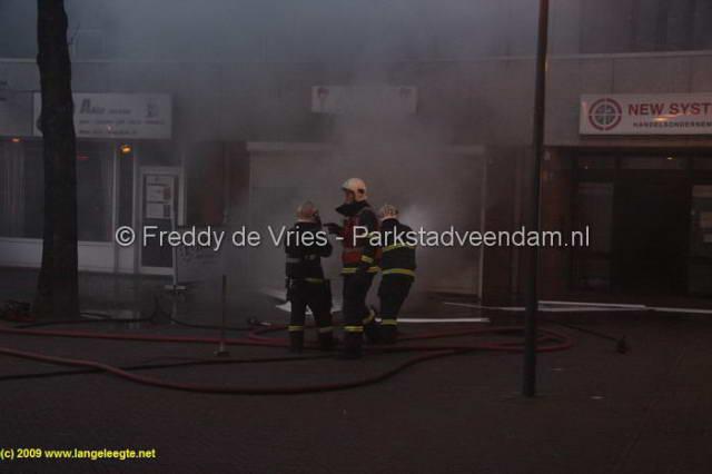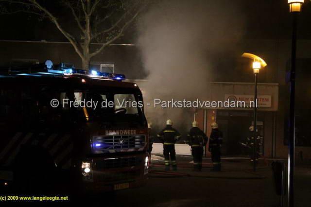 Na enig zoekwerk werd een gang achter de winkel gevonden en kon ook aan de achterzijde worden geblust. Hierna had de brandweer het vuur snel onder controle en kon omstreeks 23.15 uur het sein brand meester gegeven worden.