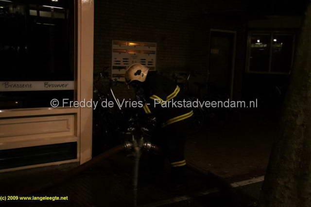 De brandweer heeft ter plaatse het pand open gebroken en is begonnen te blussen. Al snel werd er opgeschaald naar een grote brand, gezien het gevaar voor de aanliggende panden en het achtergelegen ABC complex. De bewoners van de naastgelegen Veenlustflat kregen van de politie de opdracht om ramen en deuren te sluiten, gezien de rookontwikkeling. Ook werd het ABC complex ontruimd.