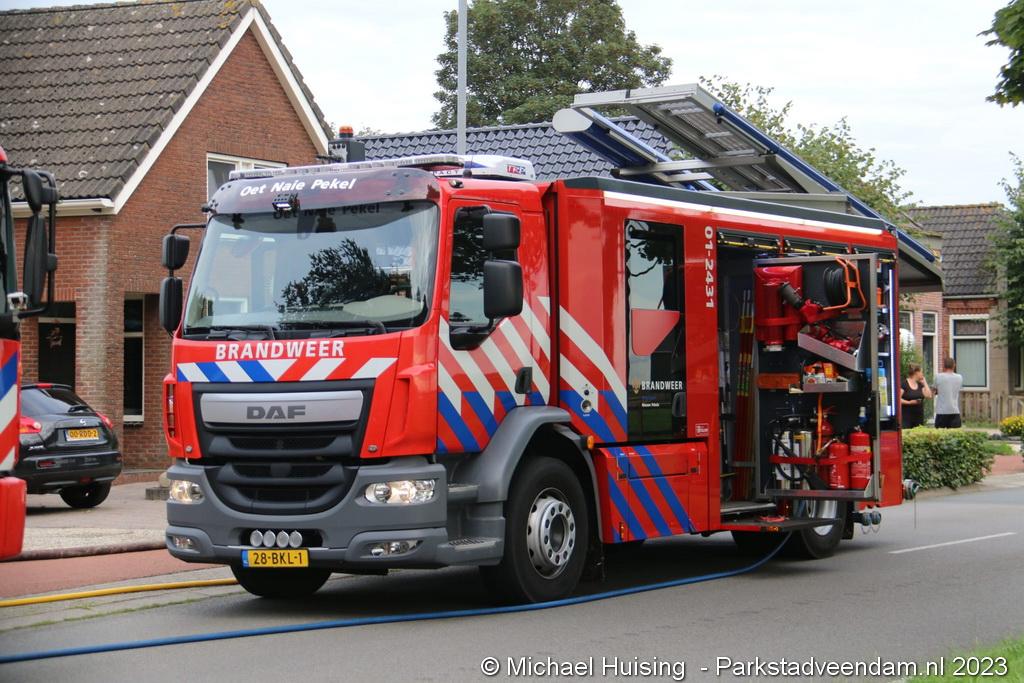 Dinsdagmiddag rond 17:00 uur werden zowel brandweer Veendam en Nieuwe Pekela opgeroepen voor een dakbrand van een woning aan de Ommelanderwijk in Veendam.