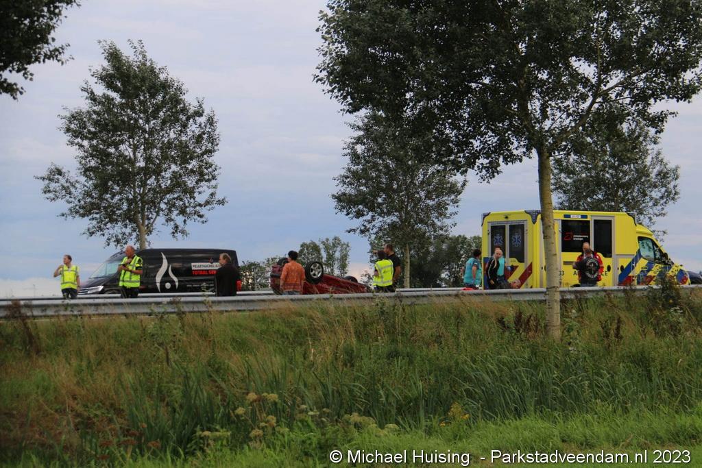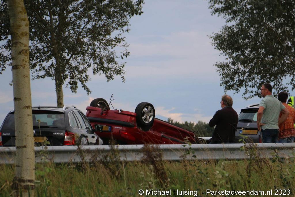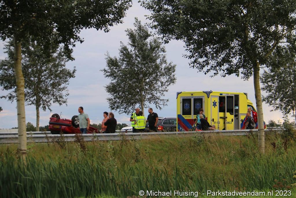 Op de N33 bij Veendam zijn dinsdagmiddag tijdens de spits twee voertuigen gebotst. Een van de auto's belandde op zijn kop. Twee ambulances kwamen ter plaatse. Tenminste een slachtoffer werd naar het ziekenhuis overgebracht. De weg was volledig dicht.
