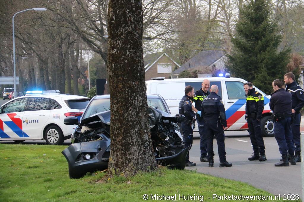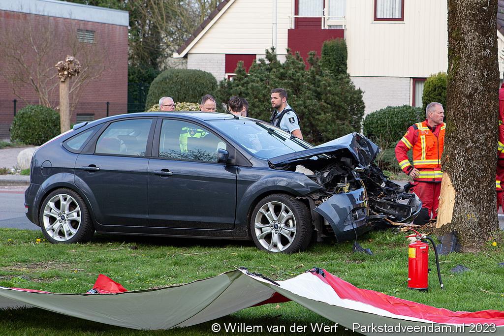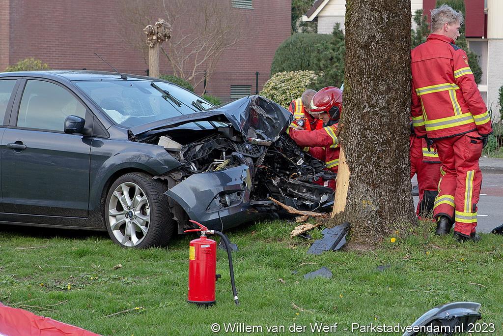 Auto botst frontaal tegen boom