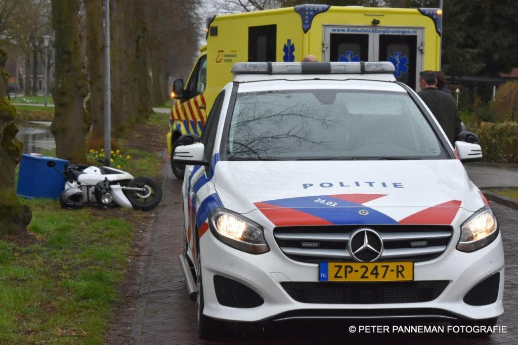 Aan de Willem de Zwijgerlaan met de Prinsenhof in Wildervank kwamen aan het eind van de zaterdagmiddag een Pizzakoerier op een brommer en een automobilist met elkaar in botsing.