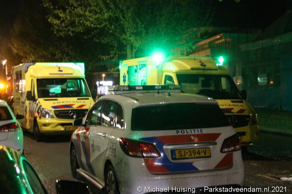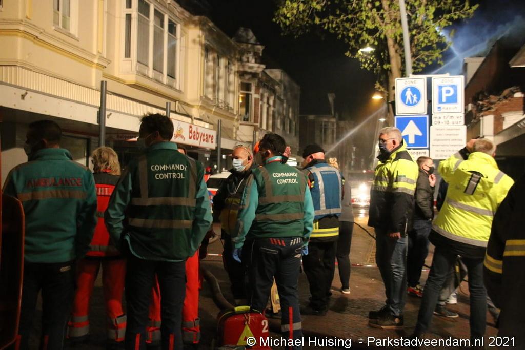 Uit voorzorg waren de traumahelikopter en ambulances aanwezig. Er vielen geen gewonden. Bij de brand in het centrum van Veendam kwam veel rook vrij.