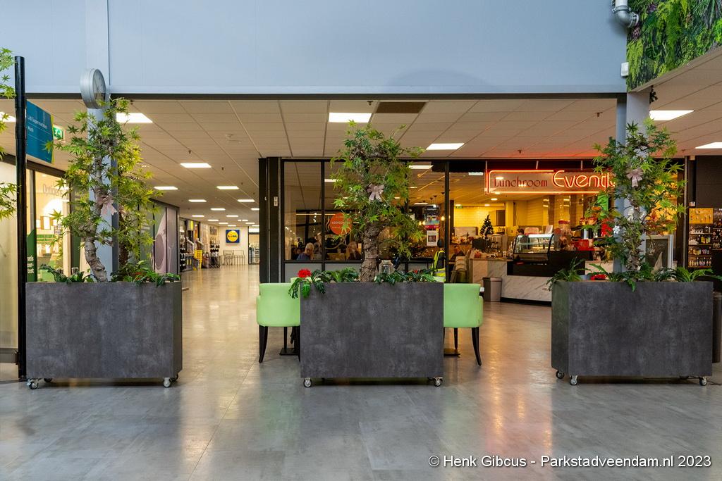 Grote verfraaide kerstbomen bieden de bezoekers sfeer, huiselijkheid en een knus gevoel. De bankjes rondom de boom in het midden van het winkelcentrum nodigen uit even uit te rusten en te genieten van al het fraais.