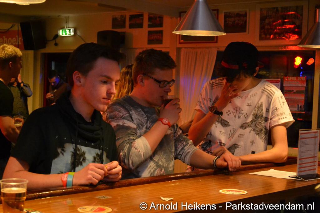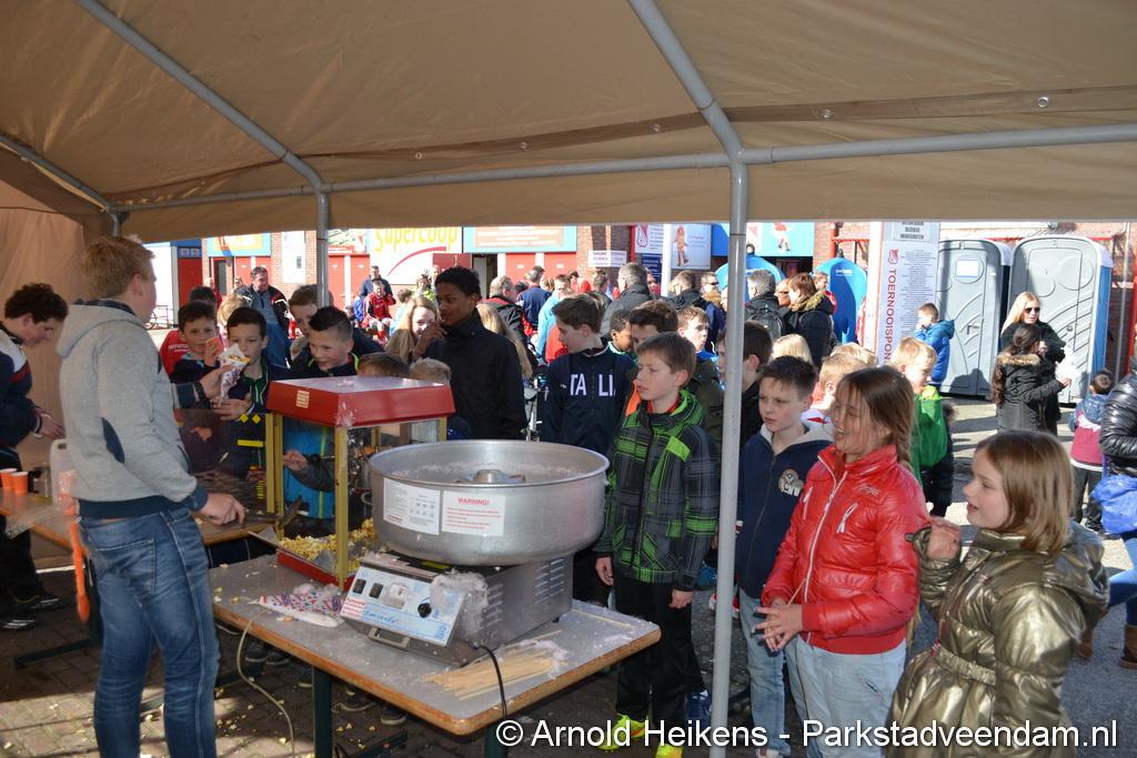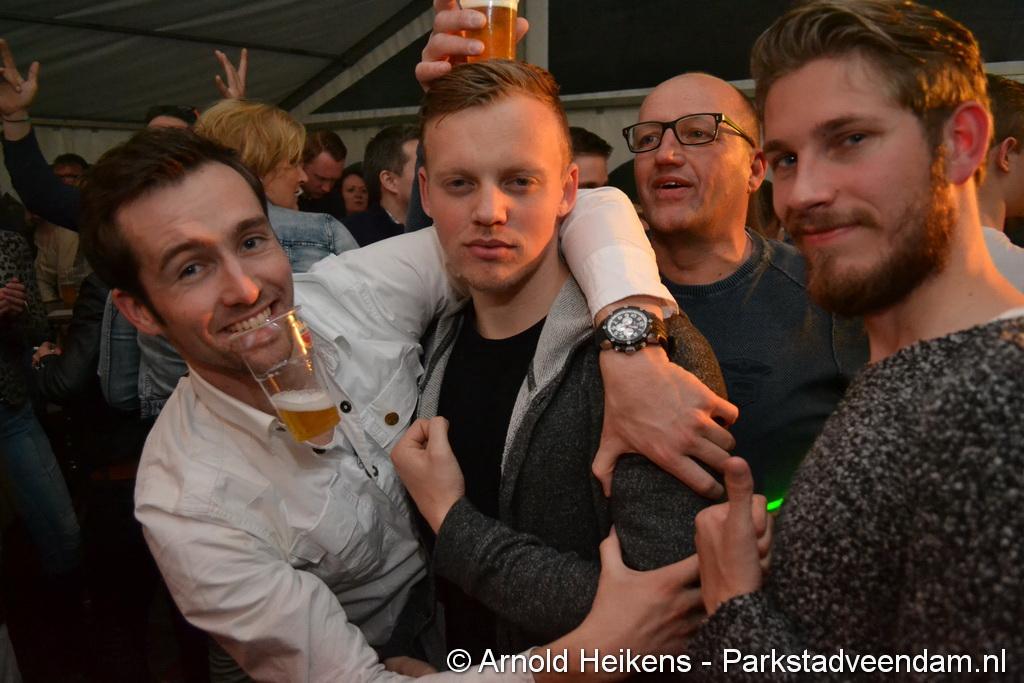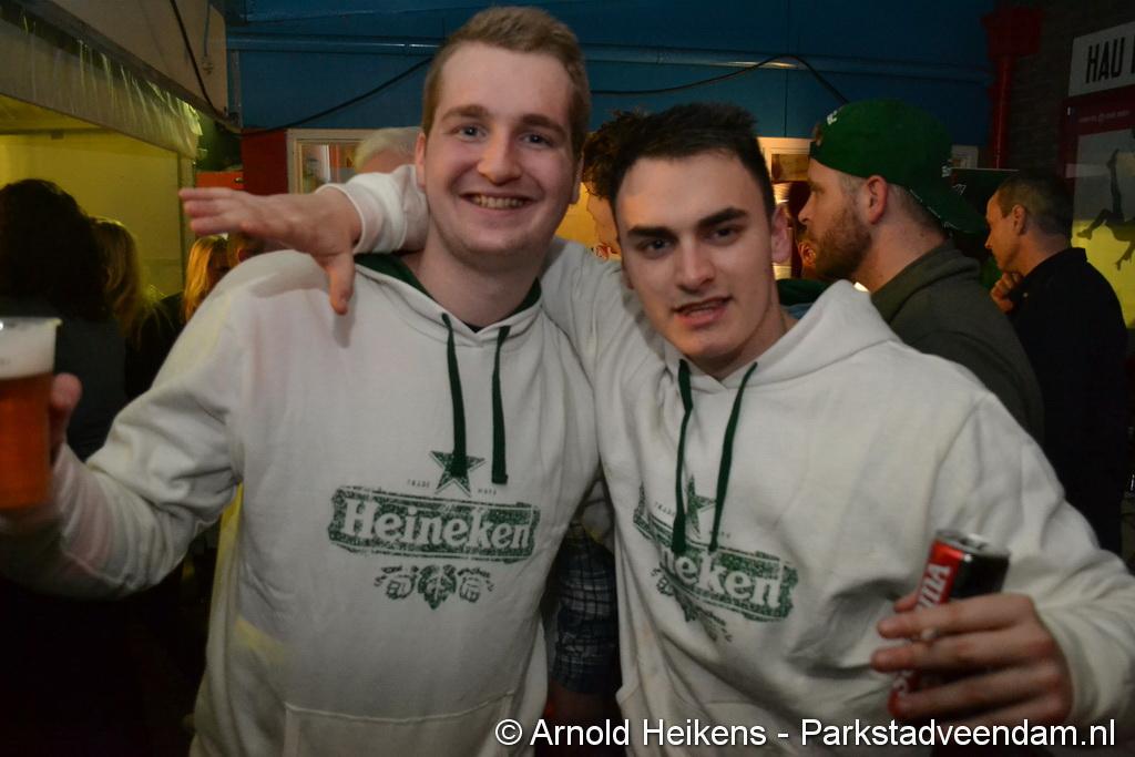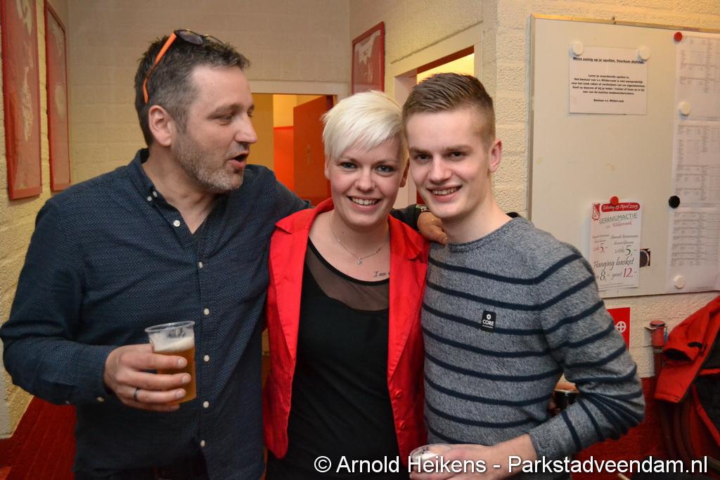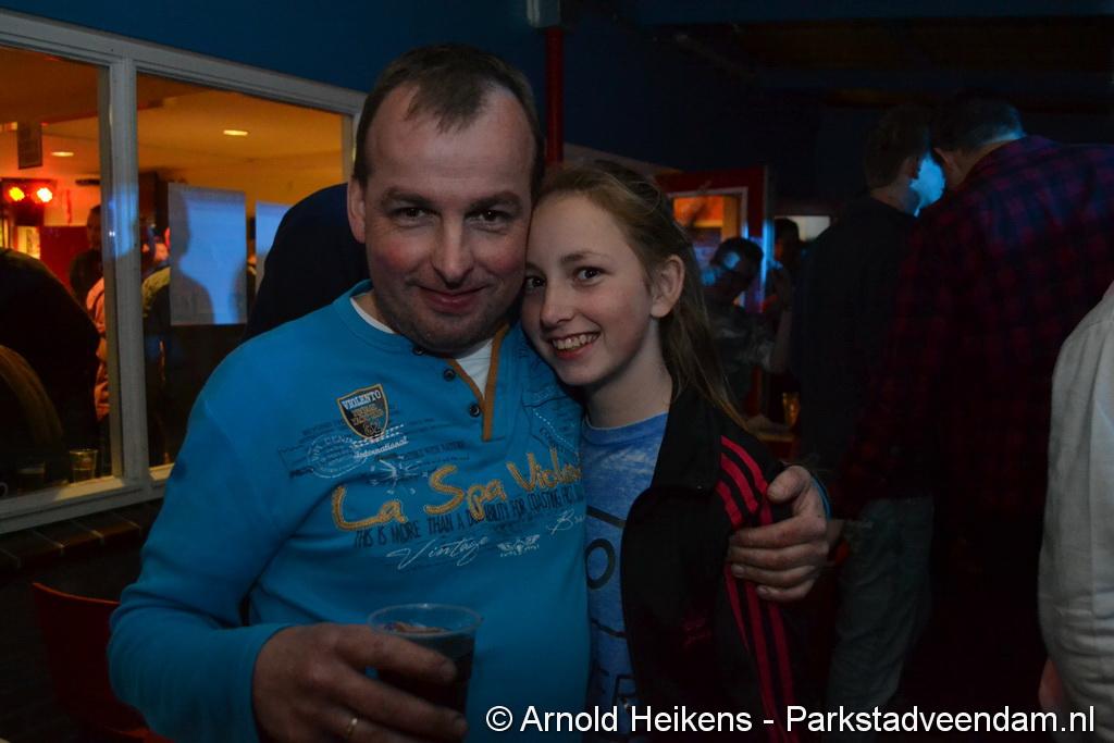 Ook in de kantine was het een drukte van belang. Veel bezoekers/sters verzamelden zich aan de bar. Het barpersoneel 'rende' van hot naar her om de 'meute' te voorzien van een drankje en een hapje. En dat deden ze met verwe, want het valt niet mee om al die dorstige kelen op tijd tevreden te stellen. Dus hulde voor het barpersoneel.
