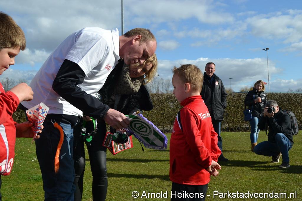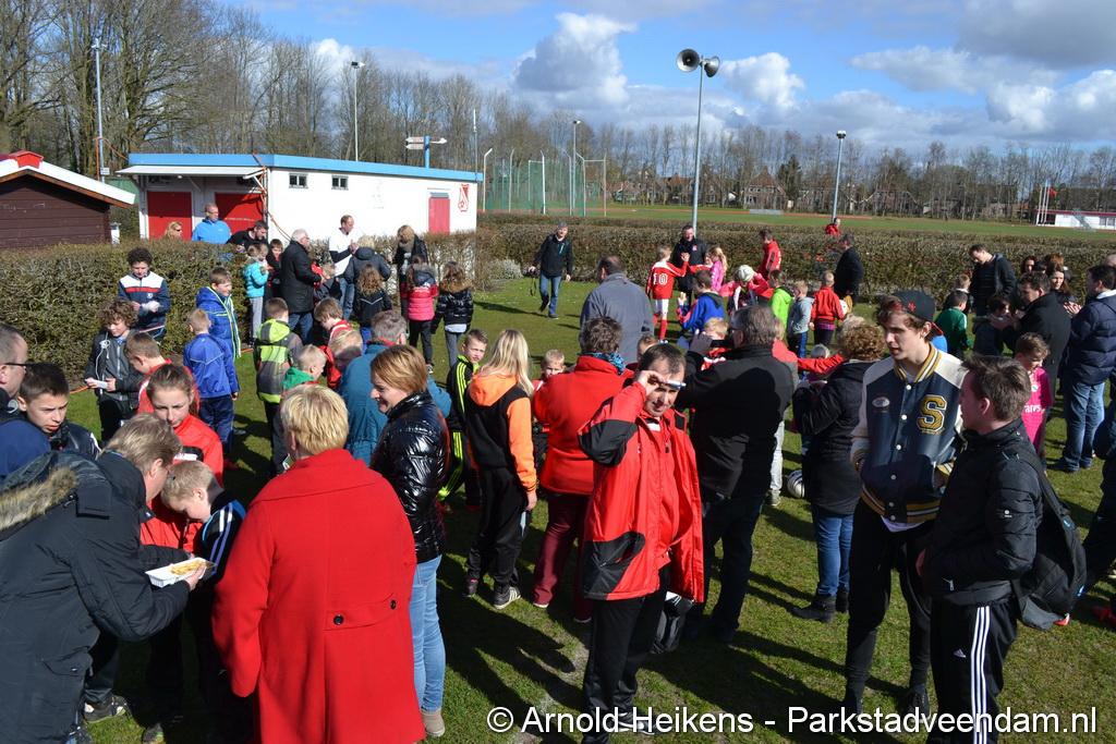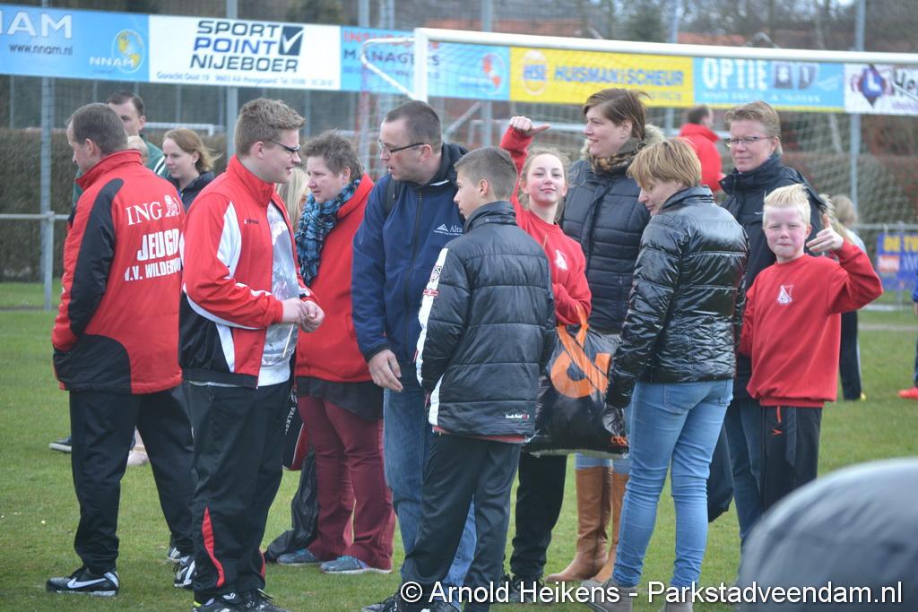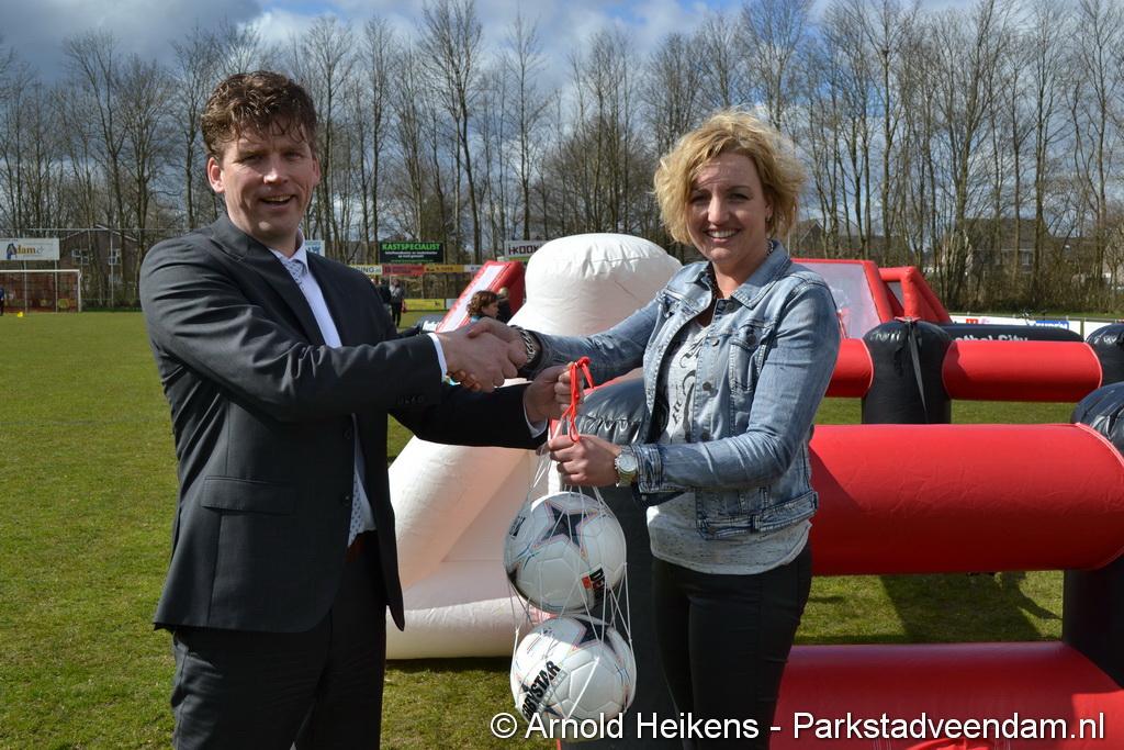 VOETBAL - Afgelopen zaterdag was het groot feest bij de voetbalvereniging Wildervank. De club van rood en wit vierde hun 85-jarig jubileum. Om dat feit onder de ogen te brengen werd er een jubileumcommissie opgericht. 'De wagen' werd op gang geraakt. Veel activiteiten vonden plaats op de velden en 's middags werd er een wedstrijd gespeeld tussen oud-Wildervank en oud-Veendam. 's Avonds was er een feestavond in de kantine. Ook wethouder Henk Jan Schmaal van de gemeente Veendam was aanwezig voor de overhandiging van twee ballen aan voorzitster Susanne van Tongeren.