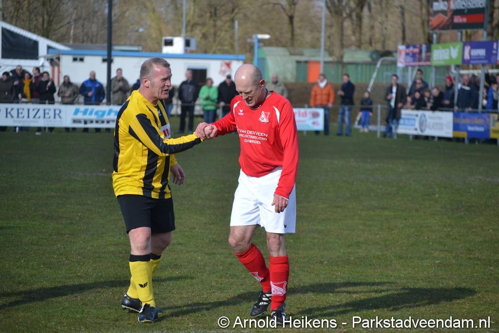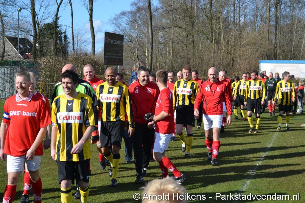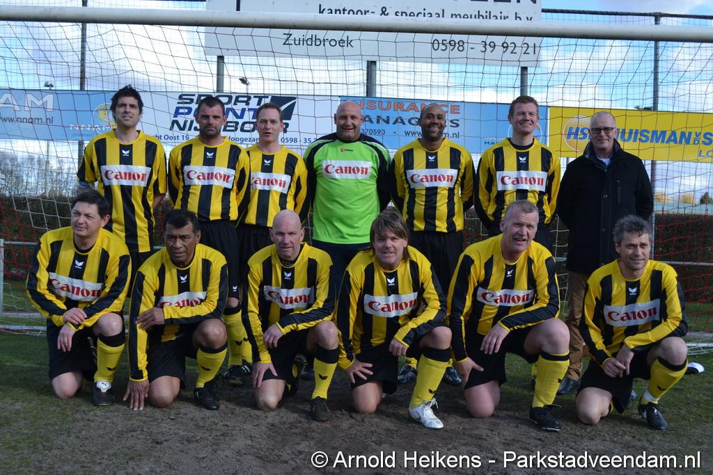 Tegen vijf uur 's middags waren oud-Veendam en de oudjes van Wildervank present. Veendam won de wedstrijd met 4-3 en er was een cruciale rol weg gelegd voor top-scheidsrechter Erik ten Horn. Wildervank heeft lange tijd de leiding gehad, maar omdat de arbiter ook een geel-zwart verleden heeft wonnen de geelzwarten de wedstrijd. Een ouderwetse swalbe van een Veendam-speler werd door Ten Horn beloond met een strafschop.